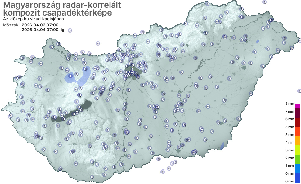 A csapadéktérkép megmutatja, hogy az elmúlt 24 órában mely vármegyékben mennyi csapadék esett. Ebből egyből látszik, hogy szárazak-e a földek, szükséges-e még aznap locsolni a kertben, a mezőgazdasági területeken.