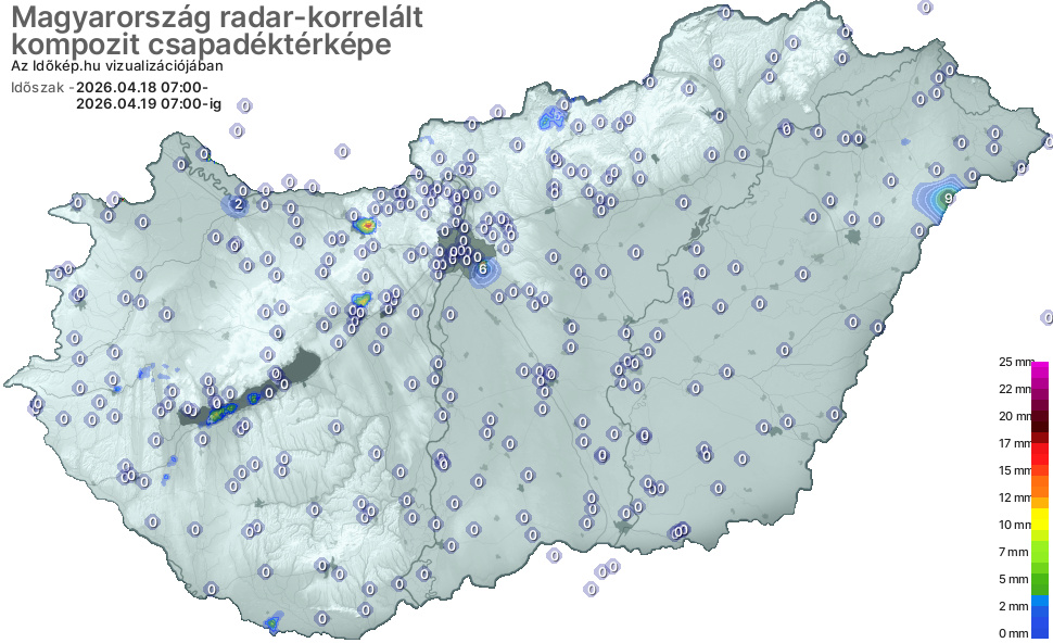 A csapadéktérkép megmutatja, hogy az elmúlt 24 órában mely vármegyékben mennyi csapadék esett. Ebből egyből látszik, hogy szárazak-e a földek, szükséges-e még aznap locsolni a kertben, a mezőgazdasági területeken.