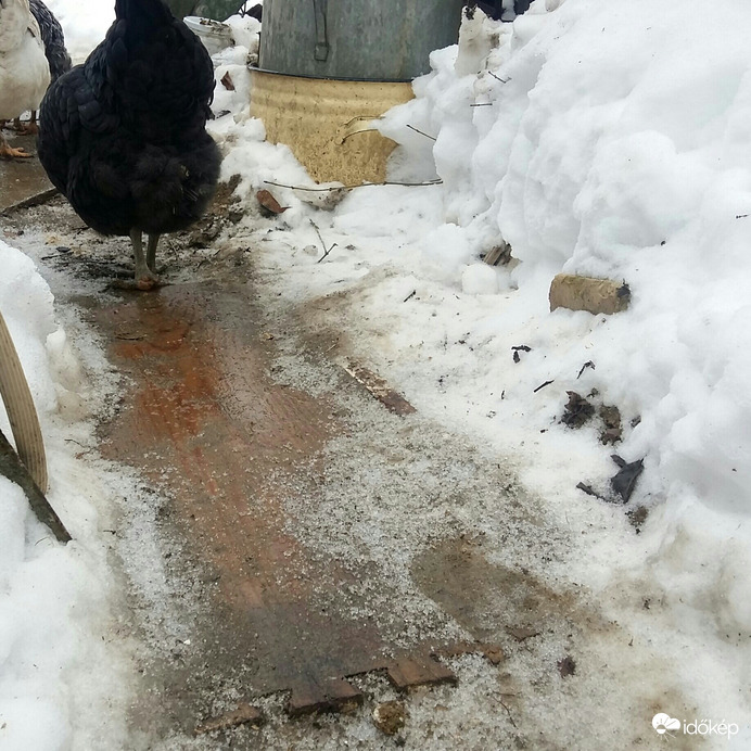 A talajfelszínen fagyott eső nyomai megmaradtak.