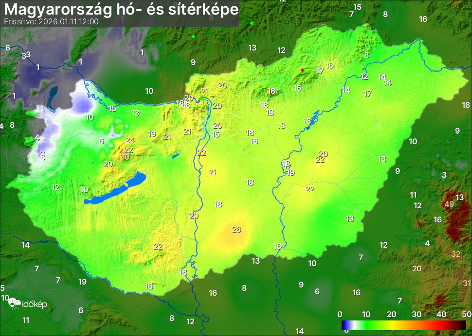 Hótérképünkön hazánk síterepei mellett észlelőink által jelzett hóvastagság adatok is megjelennek. A téli hidegben így láthatjuk, hova érdemes síelni, szánkózni indulni, merre kell óvatosan közlekedni, hol csúszósak az utak. A térkép az elmúlt 12 órában, az Észlelési oldalon leadott észlelések, valamint a sielok.hu adatai alapján készül.