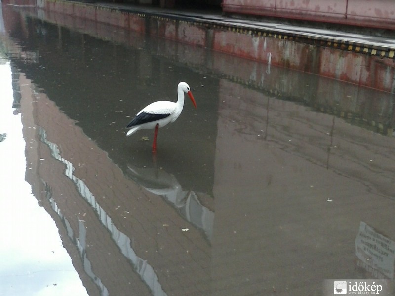 Szegeden a felhőszakadás után a gólya is a Nagyáruházba jön vásárolni,kuponokkal.