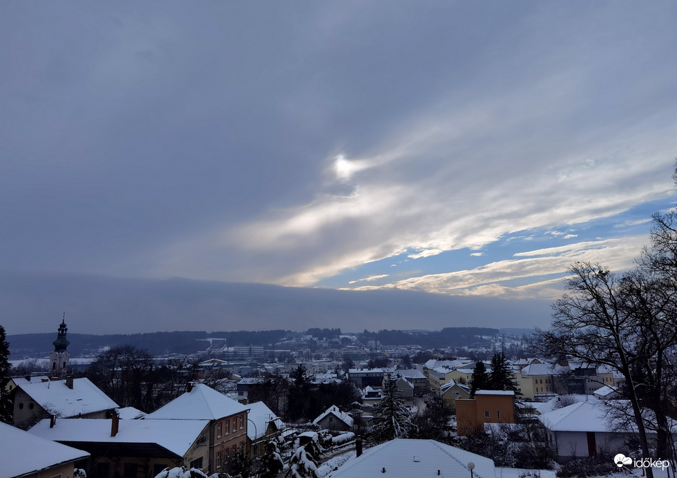 Délutáni pilkanatkép a város felett