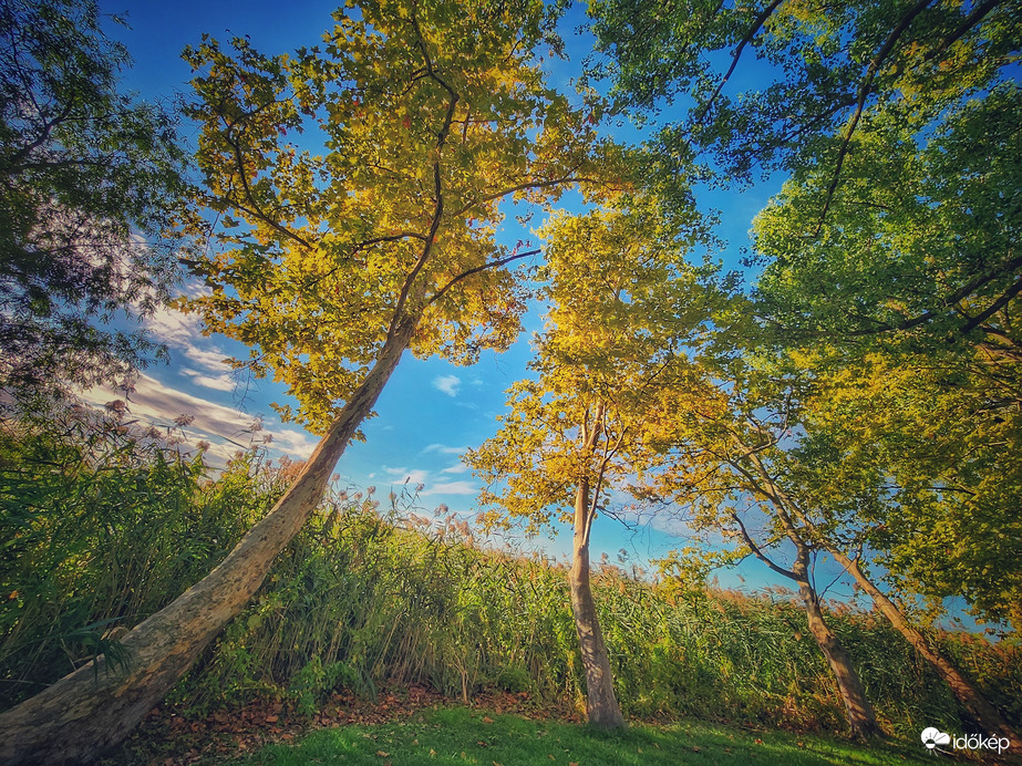 Szeptember végén- lassan, de biztosan magára öltik őszi ruhájukat a balatongyöröki platánok is.