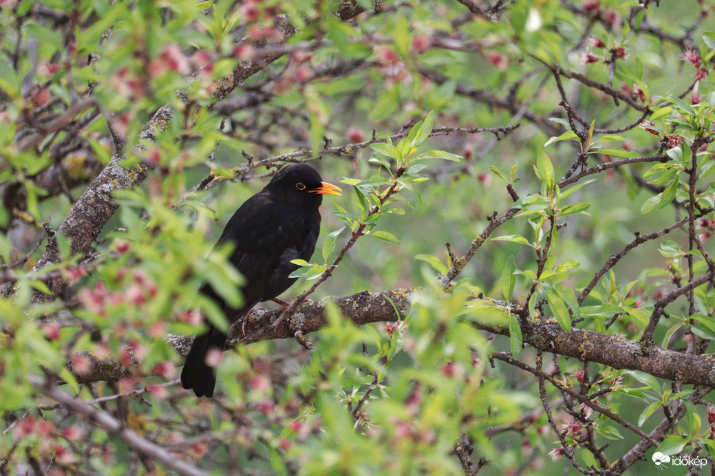A rigó, gyönyörű a faágak között!