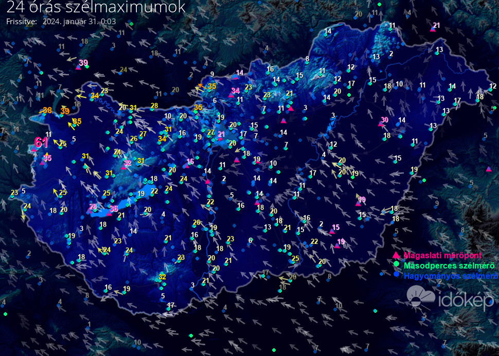 24 órás szélmaximum