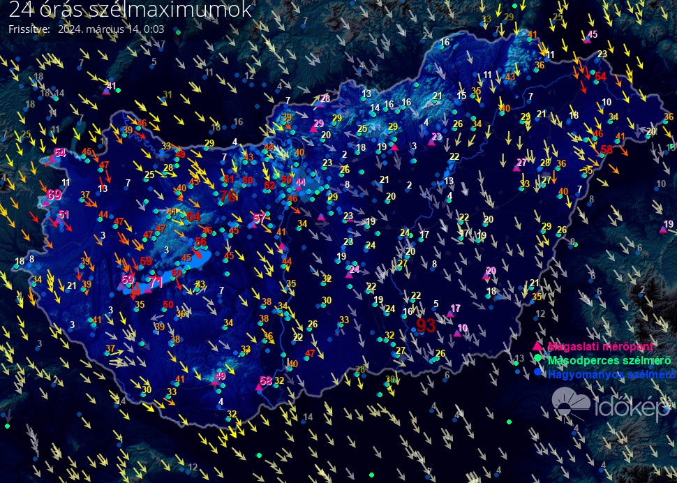 24 órás szélmaximum
