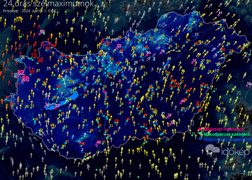 24 órás szélmaximum