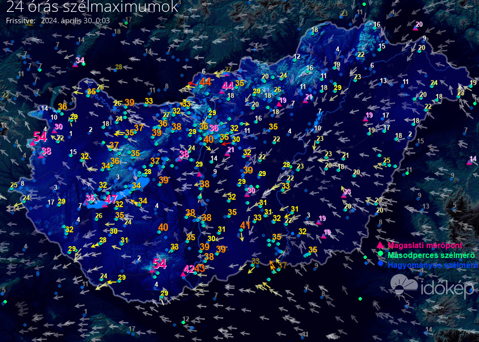 24 órás szélmaximum