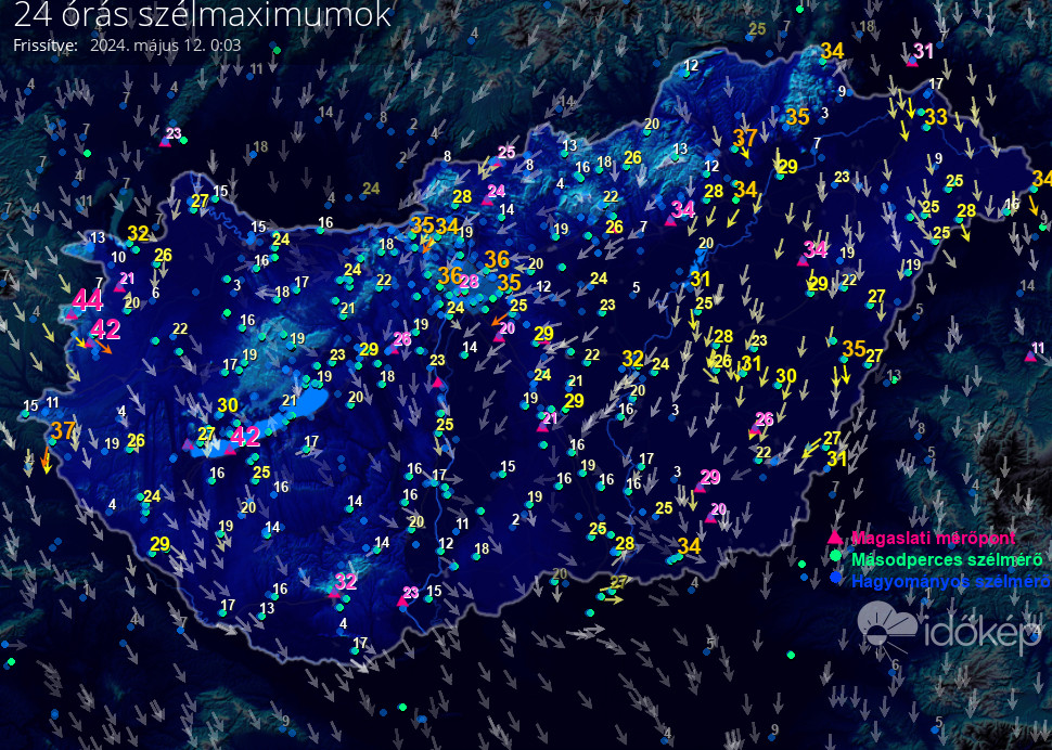 24 órás szélmaximum