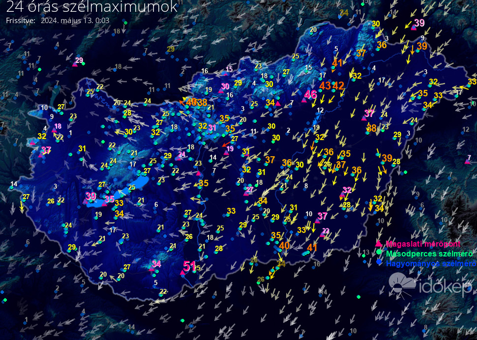 24 órás szélmaximum
