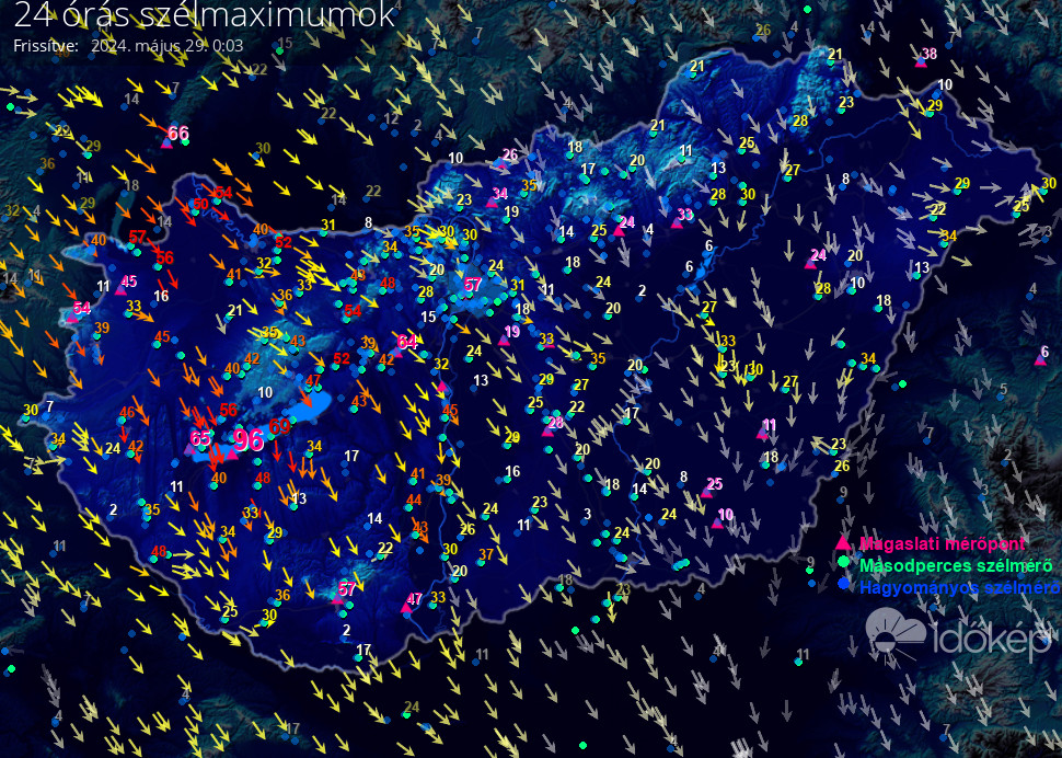 24 órás szélmaximum