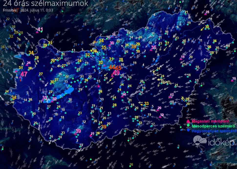 24 órás szélmaximum