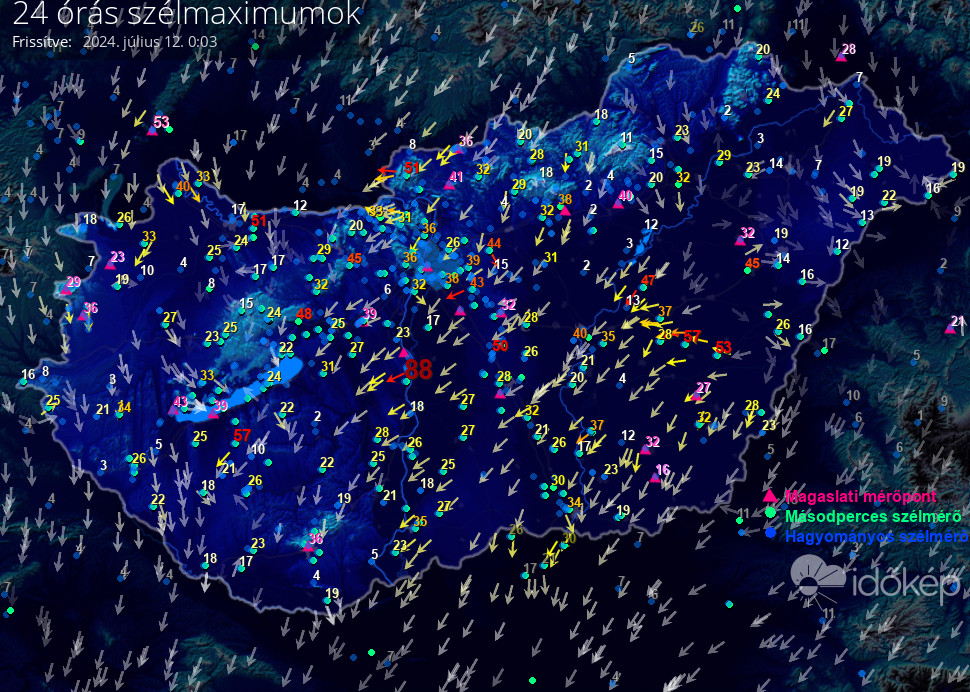 24 órás szélmaximum