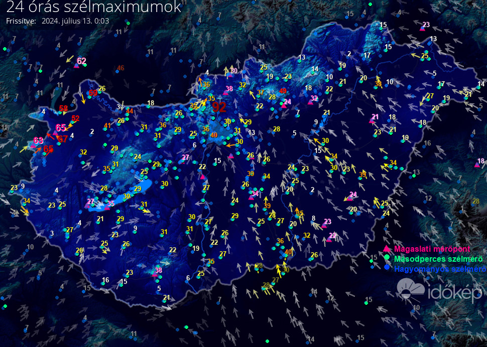 5 percenként frissítve, az elmúlt 24 óra méréseiből,