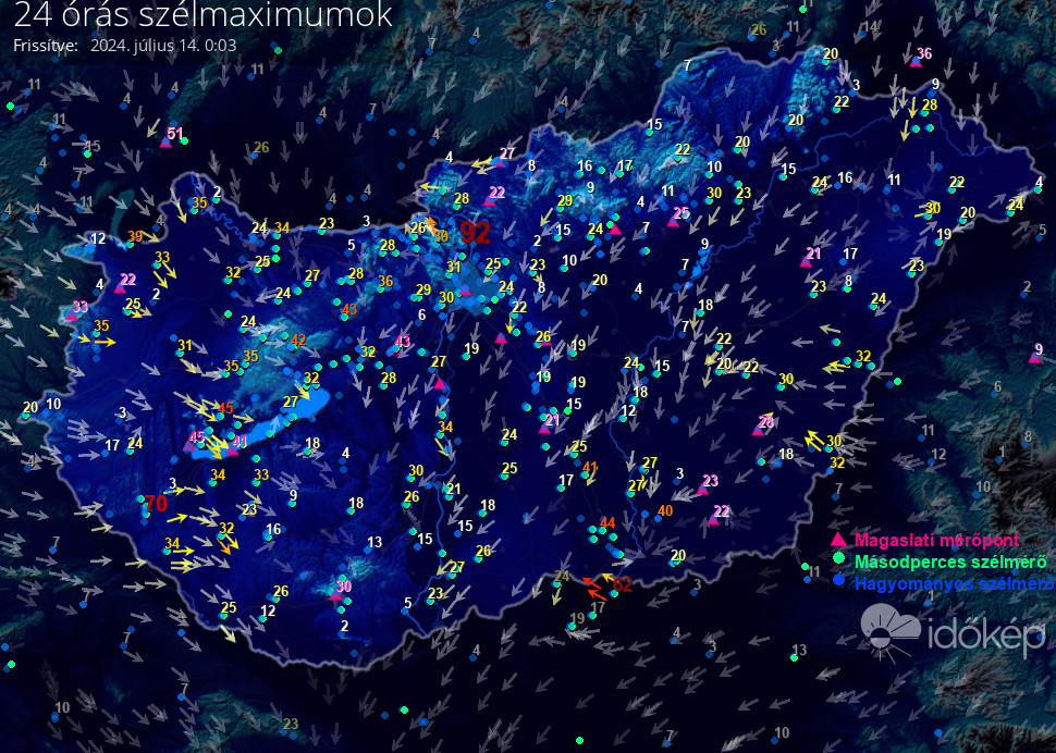 24 órás szélmaximum