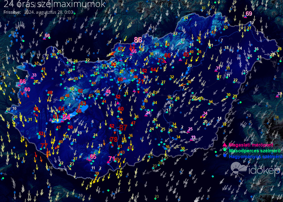 24 órás szélmaximum