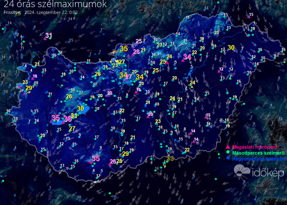 24 órás szélmaximum