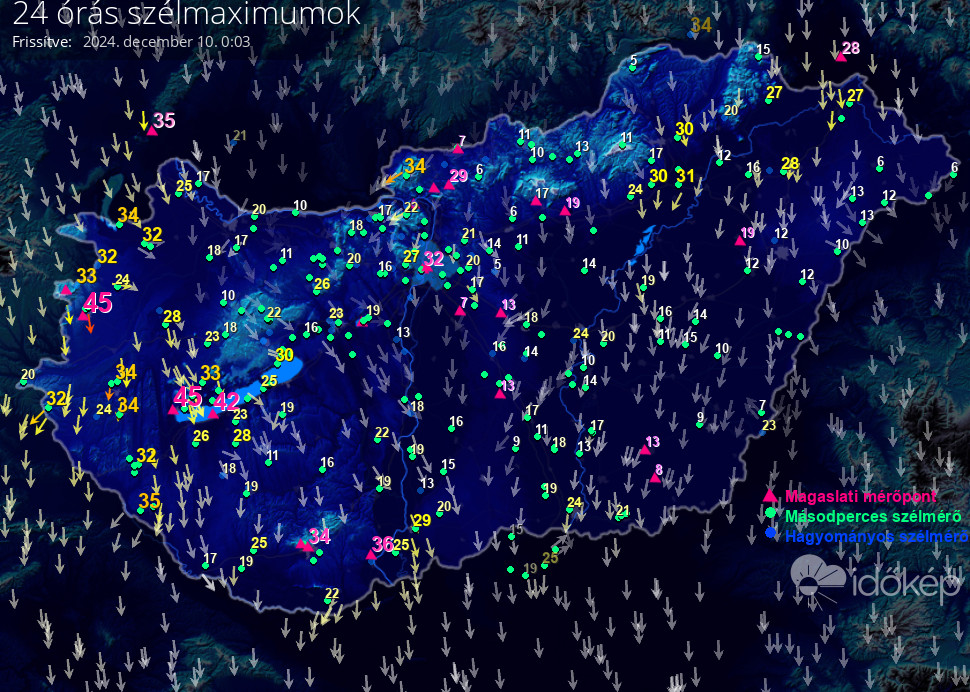 24 órás szélmaximum