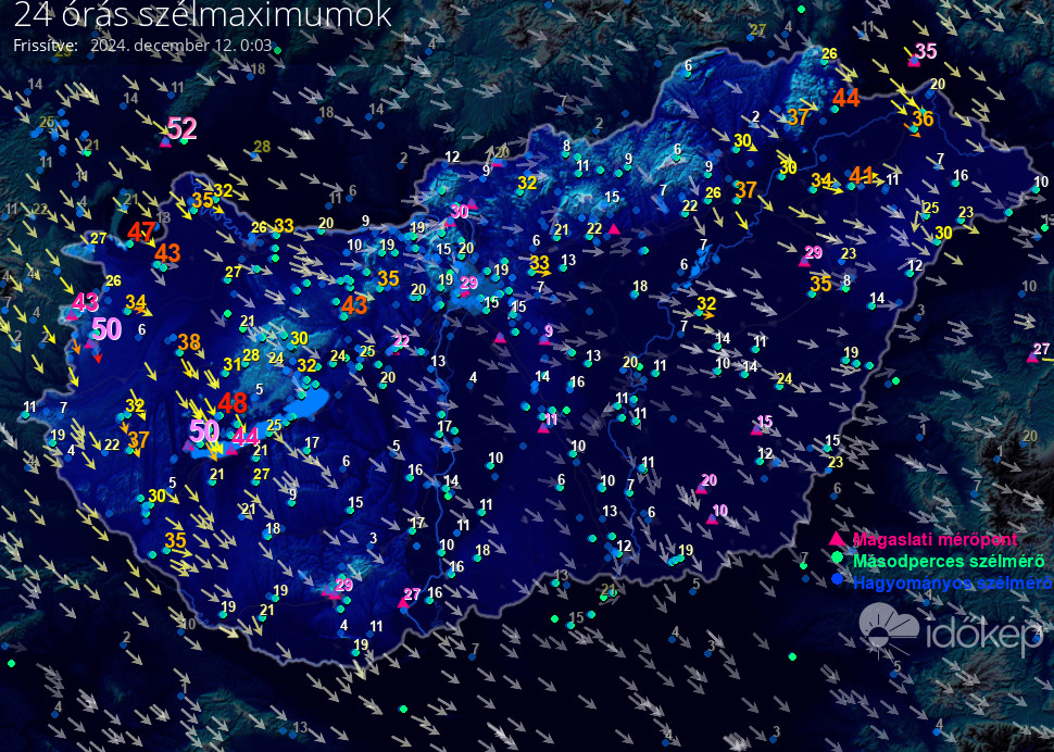 24 órás szélmaximum