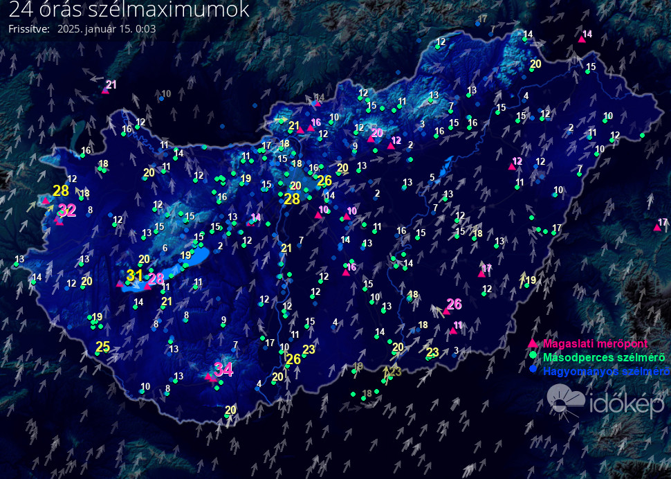 24 órás szélmaximum
