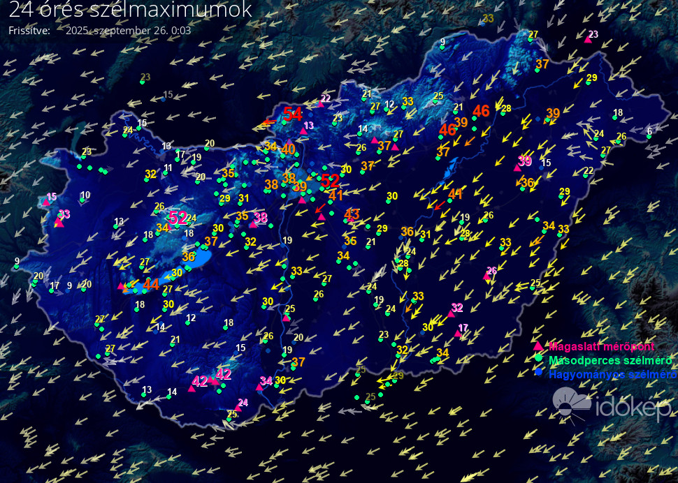 24 órás szélmaximum